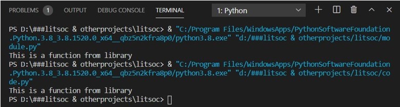 After using the above statement in the main module or library file, whenever the code is executed, we see that the result is only displayed once that is after calling the function module.printer(), instead of showing result twice and in case of module execution result is displayed if it is run directly and not from import, that is, modify module file as: